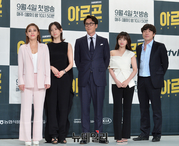 드라마 '아르곤(ARGON)'의 배우들(김주혁, 천우희, 박원상, 신현빈, 박희본)이 30일 오후 서울 영등포 타임스퀘어에서 열린 제작발표회에 참석해 포토타임을 갖고있다.