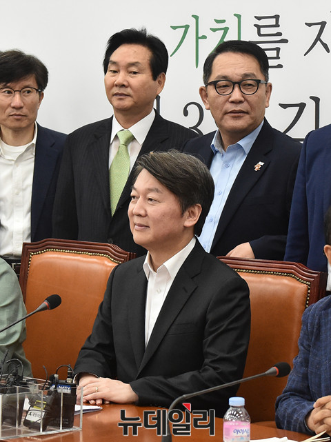 안철수 국민의당 대표가 31일 오전 국회 본청에서 열린 '제1차 원외 지역위원장들과의 원탁회의'에서 기념사진을 촬영하고 있다.