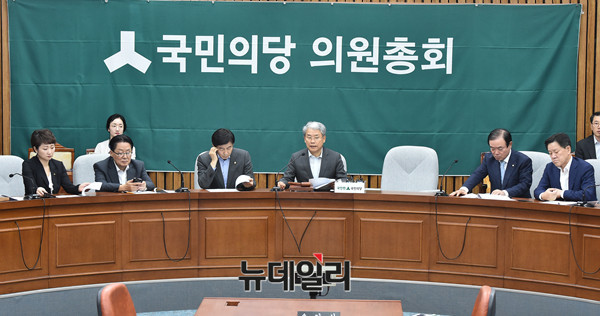 국민의당 김동철 원내대표가 31일 오후 국회에서 열린 의원총회에 참석해 회의를 주재하고 있다.