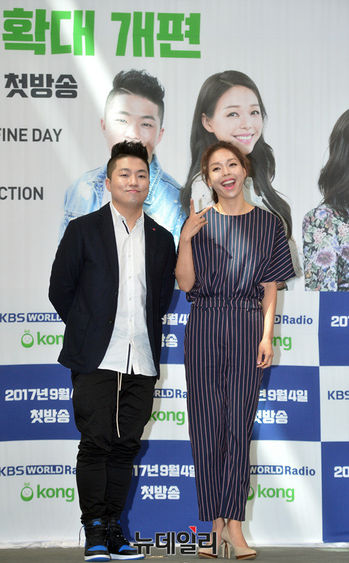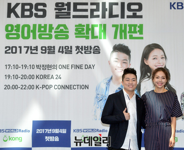 방송인 안젤라 박(Angela Park)과 프로듀서 원웨이 피터(Oneway Peter)가 1일 오전 오전 서울 KBS 신관에서 열린 국제방송 'KBS 월드라디오 영어방송 확대 개편 설명회'에 참석해 포토타임을 갖고 있다.안젤라 박과 원웨이 피터는 '케이팝커넥션(K-Pop Connection)' 공동 DJ를 맡았다.