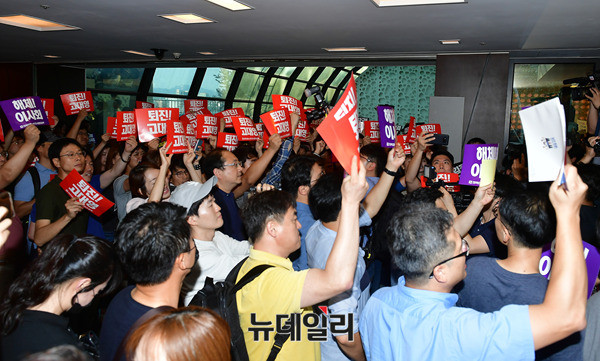 KBS와 MBC 소속 언론노조들은 행사 시작 전부터 행사장을 찾아 고대영 KBS 사장과 김장겸 MBC 사장의 사퇴를 요구했다.