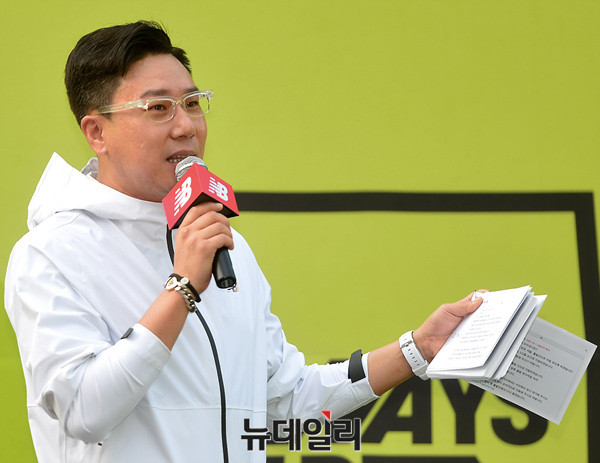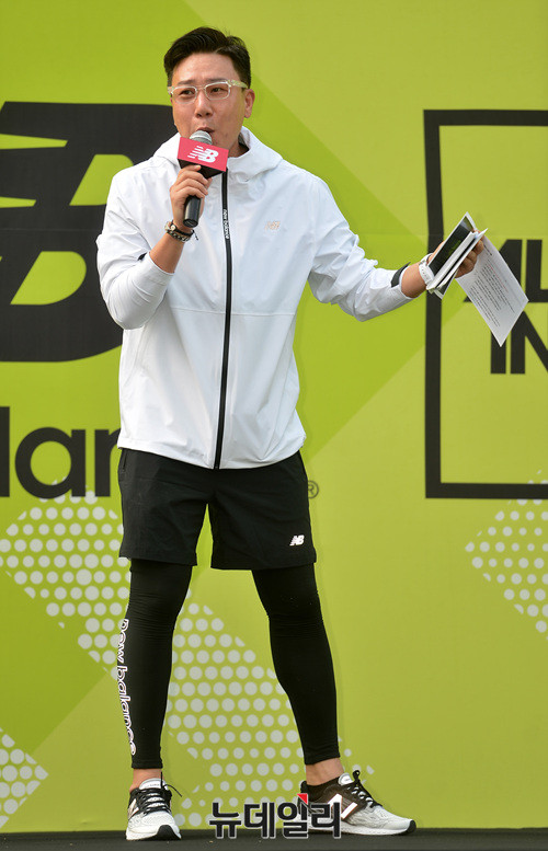 방송인 이상민이 3일 오후 서울 여의도공원에서 열린 뉴발란스(New Balance) '2017 런온서울(2017 RUN ON SEOUL)'에 참석해 사회를 보고 있다.
