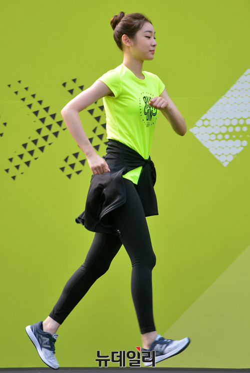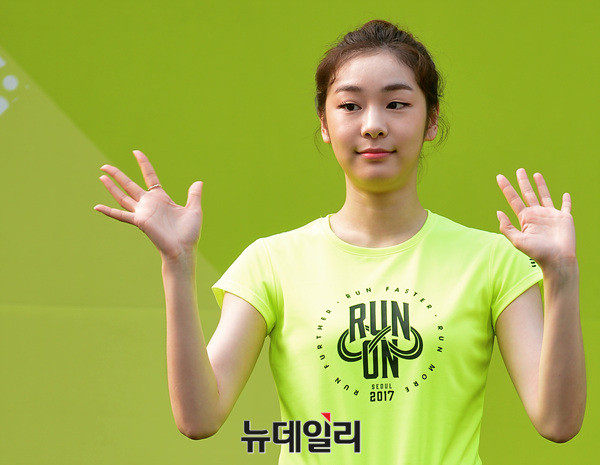 스포츠 스타 김연아가 3일 오후 서울 여의도공원에서 열린 뉴발란스(New Balance) '2017 런온서울(2017 RUN ON SEOUL)'에 참석해 손을 흔들고 있다.