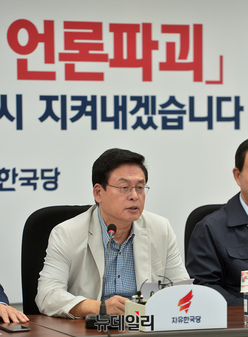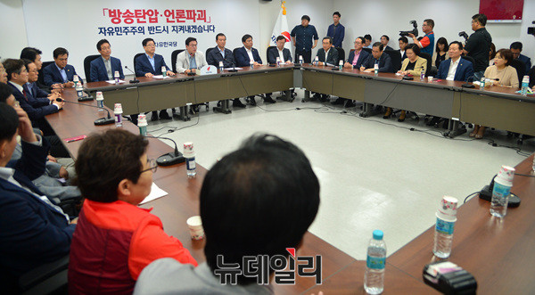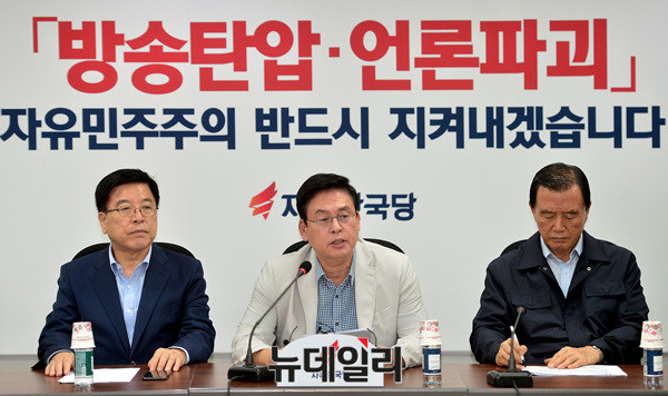 이날 정 원내대표는 자유한국당의 국회 전면 보이콧과 관련해 "단순 정쟁차원의 대여 투쟁이 아니라 대한민국의 근본 핵심가치인 자유민주주의를 수호하는 투쟁"이라며 "단지 MBC사장 대한 체포영장이 전부가 아니라 그 동안 이 정권이 보여온 오만과 독선, 좌파 포퓰리즘 폭주에 대한 저항차원에서 결정된 것"이라고 설명했다.
