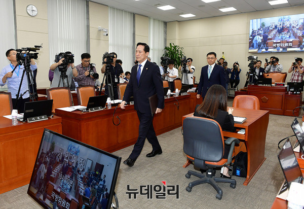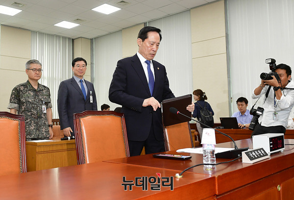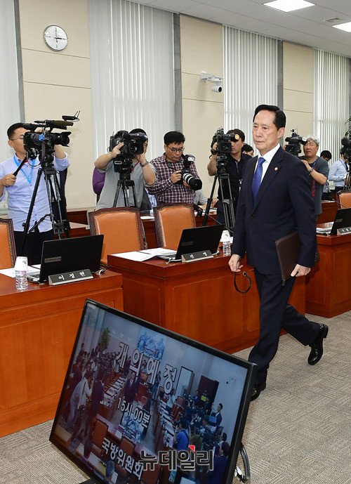 송영무 국방부장관이 4일 오후 국회에서 열린 북한 제6차 핵실험 관련 국방위원회 전체회의에 입장하고 있다.
