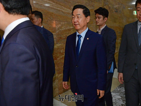 김상겸 교육부장관 겸 사회부총리가 5일 오전 국회 본회의장에서 열린 정기국회가 무산 되자 국회를 나서고 있다. 자유한국당은 문재인 정부의 공영방송 장악시도에 반발해 국회 보이콧을 진행중이다.