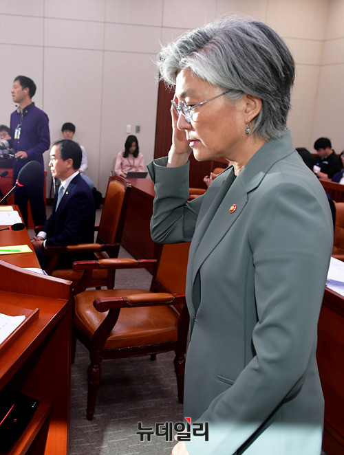 강경화 외교부 장관이 5일 오후 국회 외교통일 전체회의에서 6차 북핵실험과 관련해 현안보고를 하기위해 자리하고 있다.