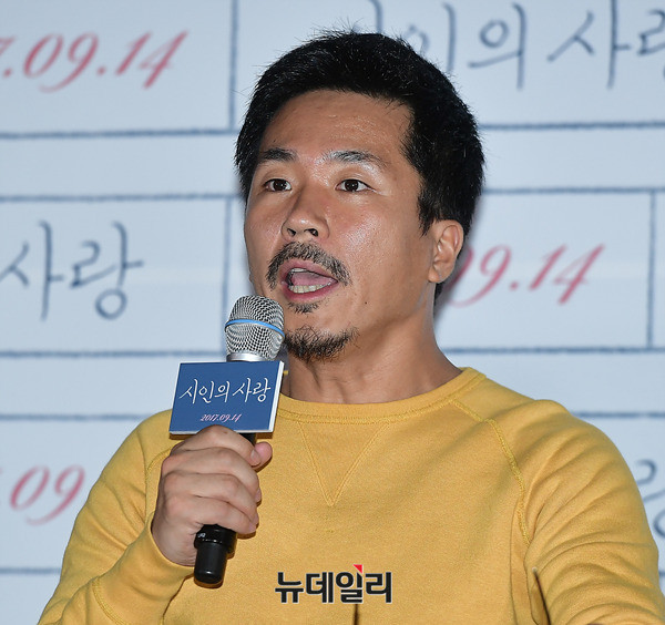 • 배우 양익준이 5일 오후 서울 용산구 CGV용산아이파크몰에서 열린 영화'시인의 사랑(각본/감독 김양희)' 언론시사회에서 인사말을 하고 있다. 양익준은 시인 현택기 역을 맡았다. 오는 14일 개봉 예정이다.
