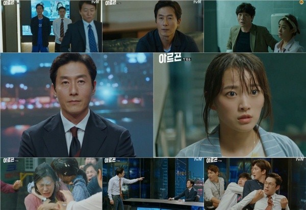 생방송이 진행되는 스튜디오에서는 김백진, 유명호를 비롯해 ‘뉴스나인’과 ‘아르곤’ 팀원들의 몸싸움까지 벌어졌다. 그 사이 실종된 어린 아이를 지키려다 사망한 주강호 소장의 시신이 현장에서 발견되면서 ‘아르곤’의 팩트가 맞았다는 사실이 입증됐다.