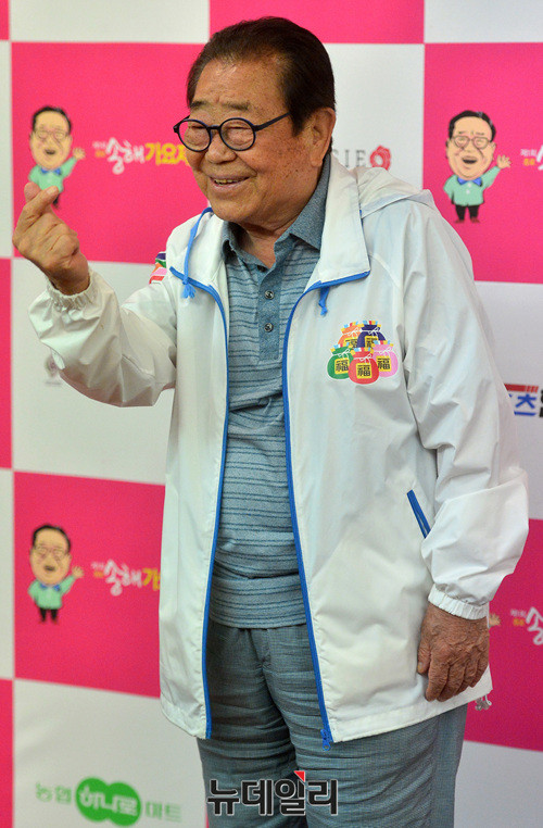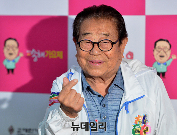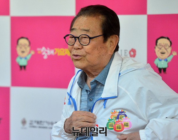 방송인 송해가 6일 오후 서울 강남구 임피리얼팰리스호텔에서 열린 '제1회 종로 송해 가요제 기자회견'에 참석해 포토타임을 갖고 있다.
