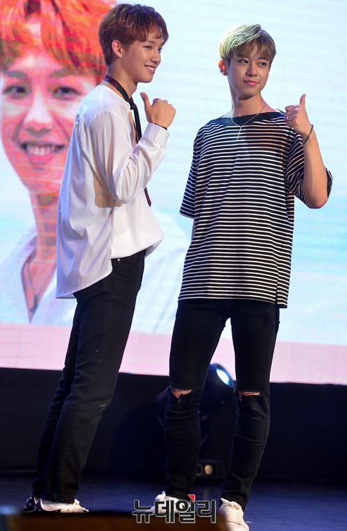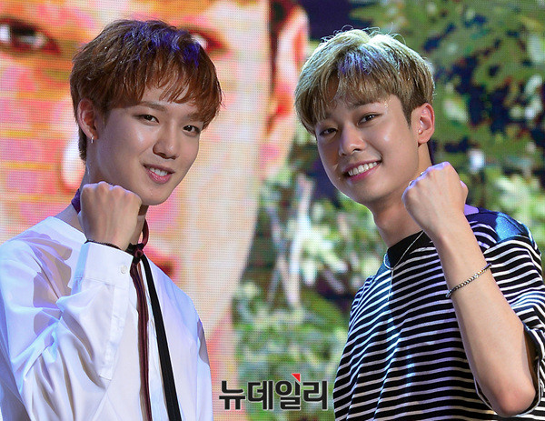 신인그룹 엠엑스엠(MXM : 임영민, 김동현)이 6일 오후 서울 강남구 KT&G상상마당 대치아트홀에서 열린 첫 번째 미니앨범 '언믹스(UNMIX)' 발매 기념 쇼케이스에 참석해 포토타임을 갖고 있다.