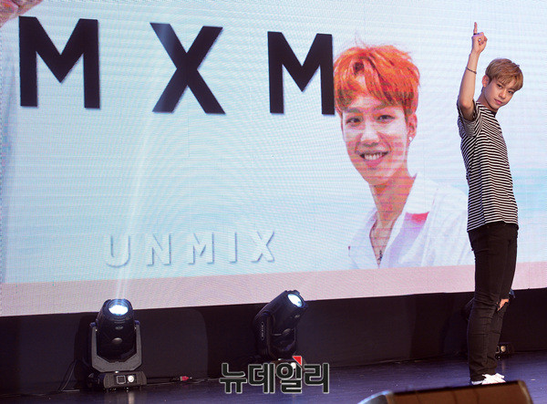 신인그룹 엠엑스엠(MXM : 임영민, 김동현) 김동현이 6일 오후 서울 강남구 KT&G상상마당 대치아트홀에서 열린 첫 번째 미니앨범 '언믹스(UNMIX)' 발매 기념 쇼케이스에 참석해 포토타임을 갖고 있다.