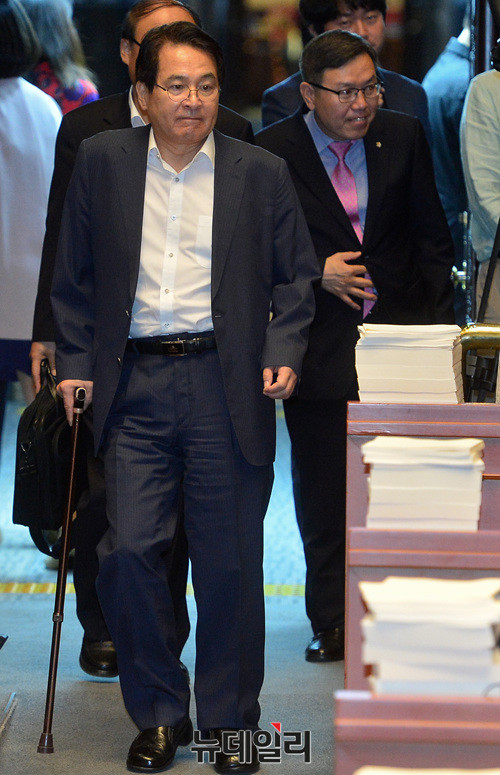 심재철 국회부의장이 7일 오전 국회에서 열린 '비상의원총회 및 방송장악저지 대토론회'에 입장하고 있다.
