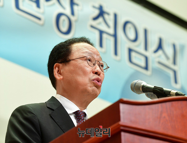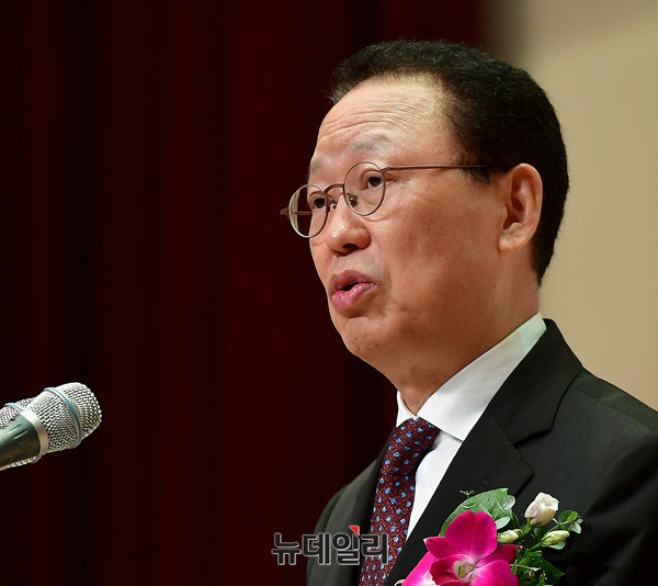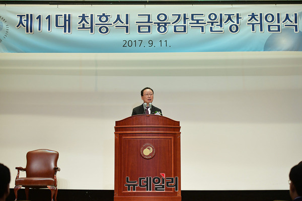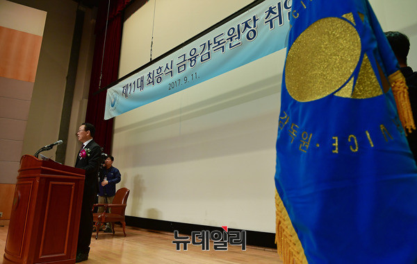 최흥식 신임 금융감독원장이 11일 오전 서울 여의도 금융감독원에서 열린 취임식에서 취임사를 하고 있다.