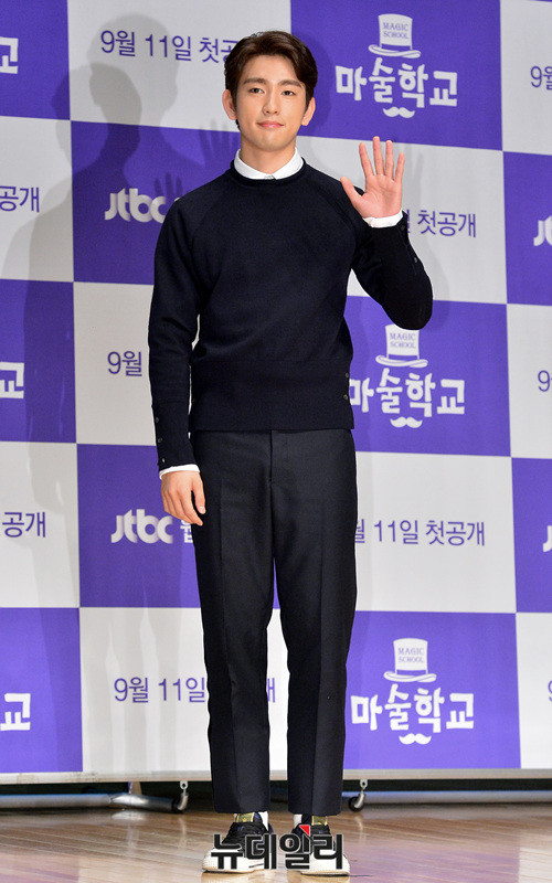 그룹 갓세븐(GOT7) 박진영이 11일 오후 서울 마포구 JTBC에서 열린 드라마 '마술학교' 제작발표회에 참석해 포토타임을 갖고 있다.
