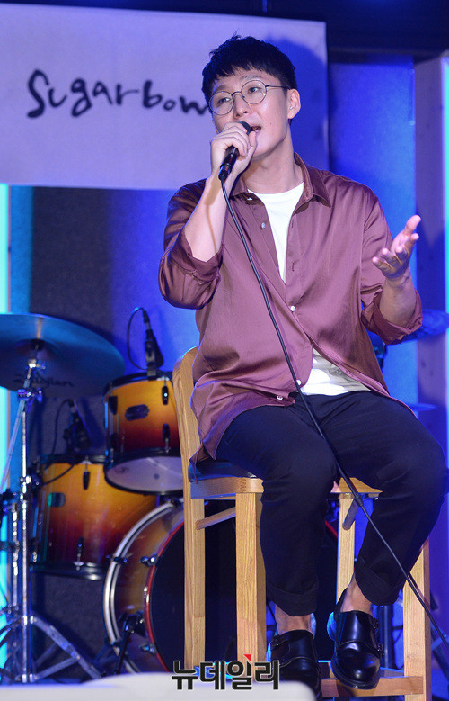 가수 슈가볼(SUGARBOWL)이 11일 오후 서울 종로구 복합문화공간 에무에서 열린 두 번째 정규앨범 '예외' 발매기념 음감회에서 신곡 무대를 선보이고 있다.