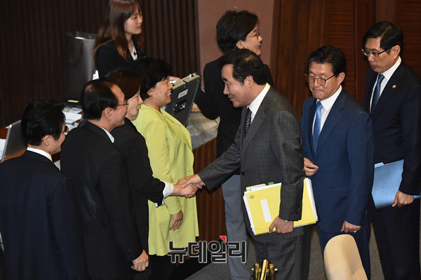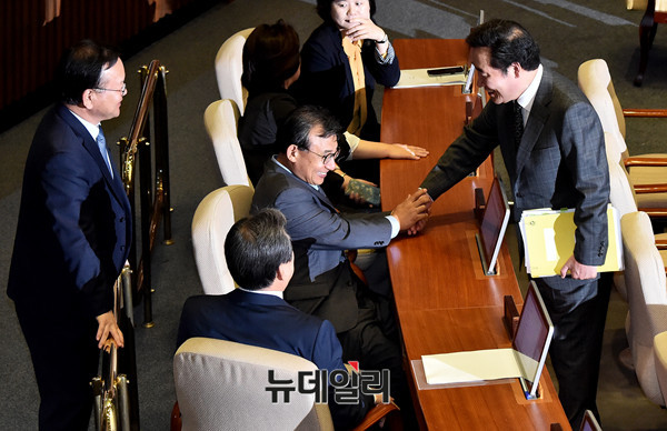 [포토] 의원들과 인사 나누는 이낙연 국무총리