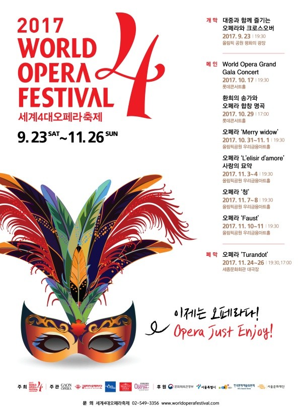 새롭고 신선한 오페라축제가 온다. 'Opera! Just Enjoy! 이제는 오페라다!'라는 슬로건을 내걸고 ‘2017세계4대오페라축제’가 오는 23일 개막한다. '2017세계4대오페라축제'는 3개의 콘서트 공연, 5개의 전막 오페라(메리위도우· 사랑의 묘약· 청· 파우스트· 투란토트)를 모두 만날 수 있는 대중친화적인 오페라축제다.