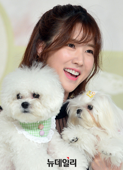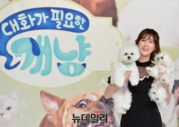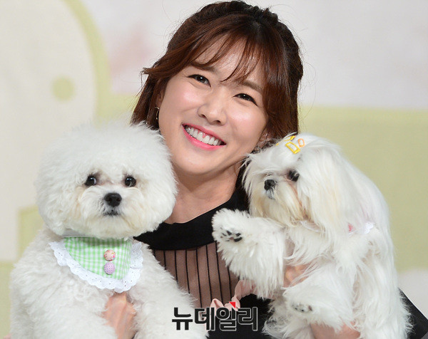 배우 이수경과 반려견 부다, 동동이 12일 오후 서울 영등포 타임스퀘어에서 열린 예능 프로그램 '대화가필요한개냥' 제작발표회에 참석해 포토타임을 갖고있다.