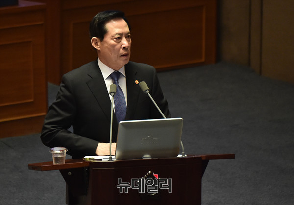 송영무 국방부장관이 12일 오후 국회에서 열린 외교·통일·안보 분야 대정부질문에서 의원들의 질문에 답변하고 있다.