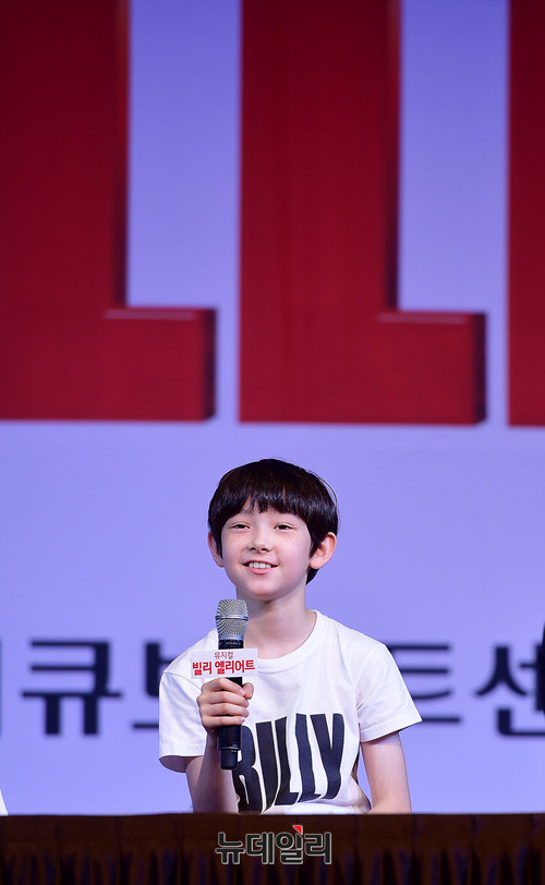 빌리 역을 맡은 '에릭 테일러(2007년생)'가 12일 오후 서울 중구 더플라자 호텔에서 열린 뮤지컬 '빌리 엘리어트' 제작발표회에서 포부를 밝히고 있다. '빌리 엘리어트'는 2000년 개봉해 아카데미상 후보로 올랐던 동명의 영화를 원작으로 한 작품으로 오는 11월 28일부터 2018년 5월 7일까지 디큐브아트센터에서 공연 된다.