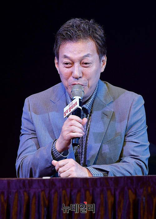 배우 김갑수가 12일 오후 서울 중구 더플라자 호텔에서 열린 뮤지컬 '빌리 엘리어트' 제작발표회에서 인사말을 하고 있다. 김갑수는 무뚝뚝하고 거칠지만 빌리를 사랑하는 아빠 역을 맡았다.