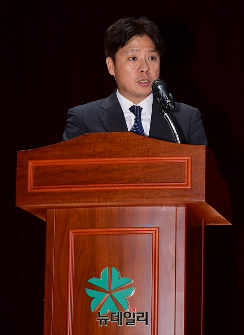 가상준 단국대 분쟁해결연구센터 소장이 13일 오후 대전시청 대강당에서 열린 신고리 5·6호기 공론화 관련 대전지역 토론회에서 개회사를 하고 있다.