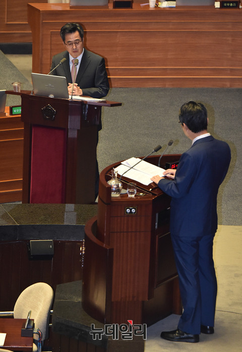 김동연 경제부총리가 13일 오후 국회에서 열린 경제분야대정부질문에서 의원들의 질문에 답하고 있다.