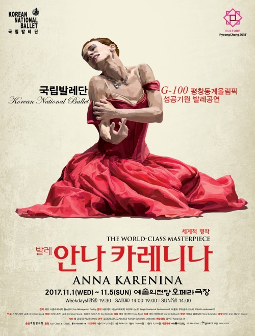 국립발레단(예술감독 강수진)은 올해 최고 기대작으로 꼽히는 세계적 명작 '안나 카레니나'의 티저 포스터를 공개했다.공개된 포스터에는 주인공 안나 카레니나가 붉은 드레스를 입고 강렬하고 매혹적인 모습으로 앉아있다. 사랑과 결혼, 비극적 운명을 암시하는 그녀의 표정이 인상적이다.발레 '안나 카레니나'는 러시아의 대문호 톨스토이의 소설을 토대로 취리히발레단 예술감독 크리스티안 슈푹이 재창조했으며, 2014년 초연 이후 세계적으로 호평을 받았다.비극적 운명을 짊어진 주인공의 이야기와 함께 아름답고 슬픈 선율의 라흐마니노프 음악, 고전미 넘치는 아름다운 고전 의상이 감상 포인트이다.발레 '안나 카레니나'는 2018 평창 동계올림픽 및 패럴림픽 대회의 성공 개최를 기원하기 위해 진행 중인 평창 문화올림픽 프로그램 '평창, 문화를 더하다'의 일환이다.첫 공연은 올림픽을 100일 앞둔 11월 1일을 시작으로 5일까지 서울 예술의전당에서 막을 올린다. 이어 대회기간인 내년 2월 10~11일 올림픽 개최지인 강원도 강릉 올림림픽아트센터 무대에 오를 예정이다.[사진=국립발레단]