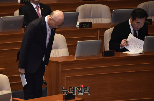 이효성 방송통신위원장이 14일 오후 국회에서 열린 교육,사회,문화 분야 대정부질문에 참석해 단상으로 향하고 있다.