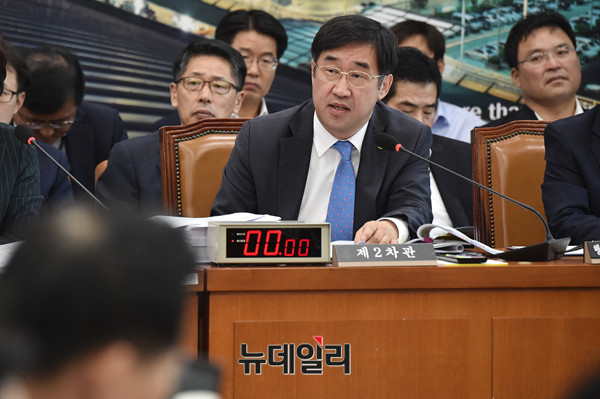 맹성규 국토부 2차관이 15일 오전 국회에서 열린 국토교통위원회 전체회의에서 경의중앙선 시운전기관차 추돌사고와 관련 의원들의 질문에 답하고 있다.