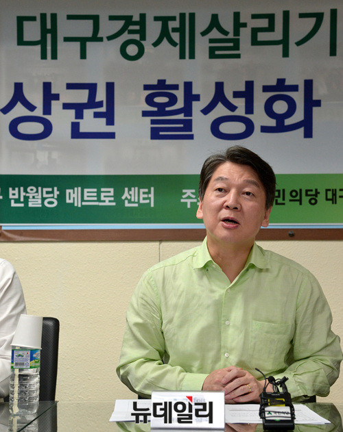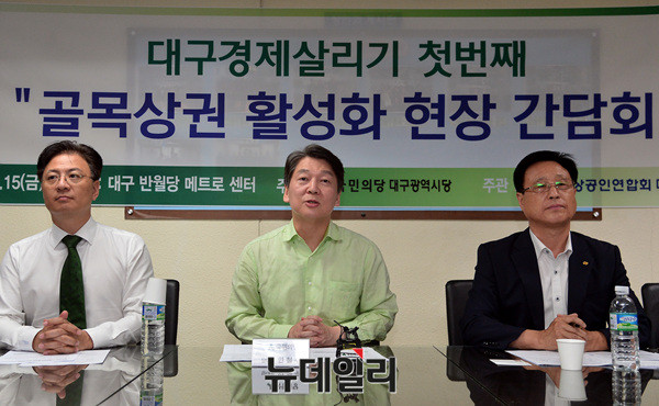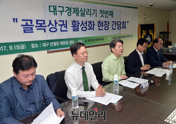 안철수 국민의당 대표가 15일 오후 대구 중구 메트로센터 회의실에서 열린 '골목상권 활성화 현장 간담회'에 참석했다.앞서 안 대표는 대구시당에서 열린 현장 최고위원회의에 참석 후 동화사를 예방해 효광주지스님과 환담을 나눴다.