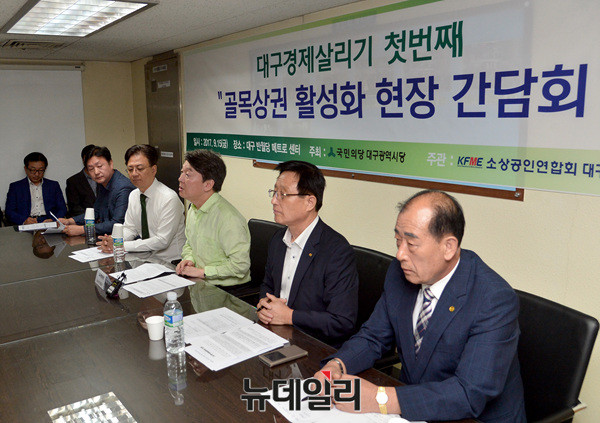 안철수 국민의당 대표가 15일 오후 대구 중구 메트로센터 회의실에서 열린 '골목상권 활성화 현장 간담회'에 참석해 발언하고 있다. 앞서 안 대표는 대구시당에서 열린 현장 최고위원회의에 참석 후 동화사를 예방해 효광주지스님과 환담을 나눴다.