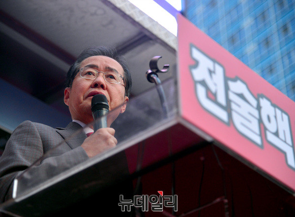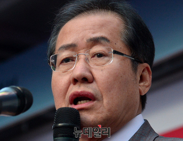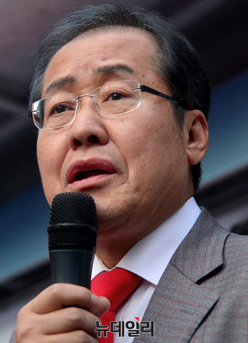 이날 홍 대표와 정우택 원내대표는 대구 거리에서 시민들을 만나 전술핵 재배치의 필요성 등을 강조했다. (대구=뉴데일리 공준표 기자)