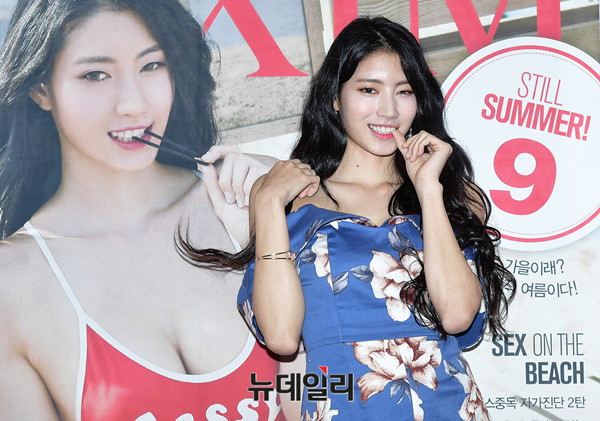일본인 가수 루이가 16일 오후 서울 마포구 북스리브로 이즈홀에서 열린 팬사인회에 참석해 포토타임을 갖고 있다. 루이는 이날 팬사인회 도중 SNS에서 화재가 됐던 퇴근길 영상 속 복장으로 바꿔 입고 등장해 시선을 집중시켰다.