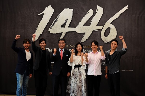 역사상 가장 위대한 성군으로 불리는 세종대왕이 뮤지컬 무대에서 되살아난다.여주시와 HJ컬쳐가 다가오는 2018년 세종대왕 즉위 600돌을 기념해 창작 뮤지컬 '1446'을 공동제작한다.원경희 여주시장은 18일 오전 서울 중구 한국프레스센터에서 열린 기자간담회에서 "여주는 인구 12만 명 정도 되는 작은 도시이지만 세종대왕 영릉이 있는 곳이다. 이번 뮤지컬 제작을 계기로 다양한 역사 유적지와 연계해 지역 브랜드 이미지를 고취하겠다"며 포부를 밝혔다.이어 "문재인 대통령을 비롯해 대한민국 국민은 물론 해외 동포, 외국인 등 많은 이들이 가장 존경하고 닮고 싶은 인물로 세종을 꼽는다. 그의 업적을 담은 뮤지컬을 제작할 수 있어 영광스럽다. 국내뿐만 아니라 전 세계 관객들이 공감하고 감동을 느낄 수 있는 작품이 되길 바란다"고 덧붙였다.세종대왕의 일대기를 그리는 뮤지컬 '1446'의 제목은 한글 창제라는 세계적인 위업을 달성한 세종대왕이 한글을 반포한 해에서 착안했다.조선의 4대 왕인 세종대왕은 인재를 고루 등용하는 이상적인 정치와 백성을 사랑하는 애민에 근간을 뒀던 왕으로 그간 소설, 영화, 드라마 등 다양한 분야의 콘텐츠로 개발돼 많은 사랑을 받아왔다.이번 작품은 한글을 창제하고 반포하기까지의 세종대왕의 독창적인 리더십과 창의성을 조명하고 세종의 애민사상을 작품 속에 녹여 각박한 현실에 지친 이들에게 위로와 격려의 메시지를 전달한다.