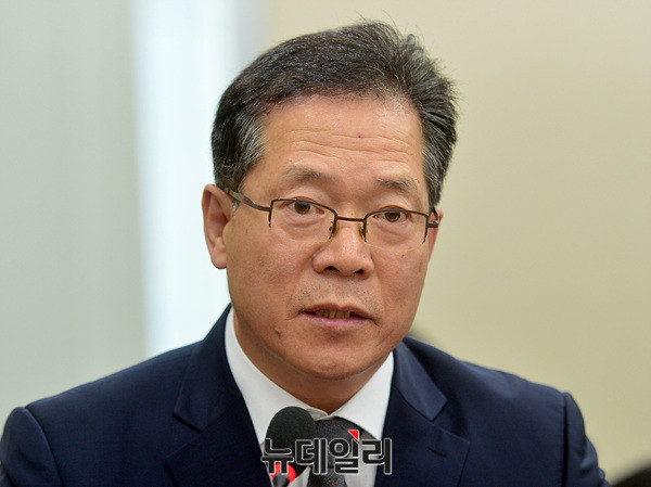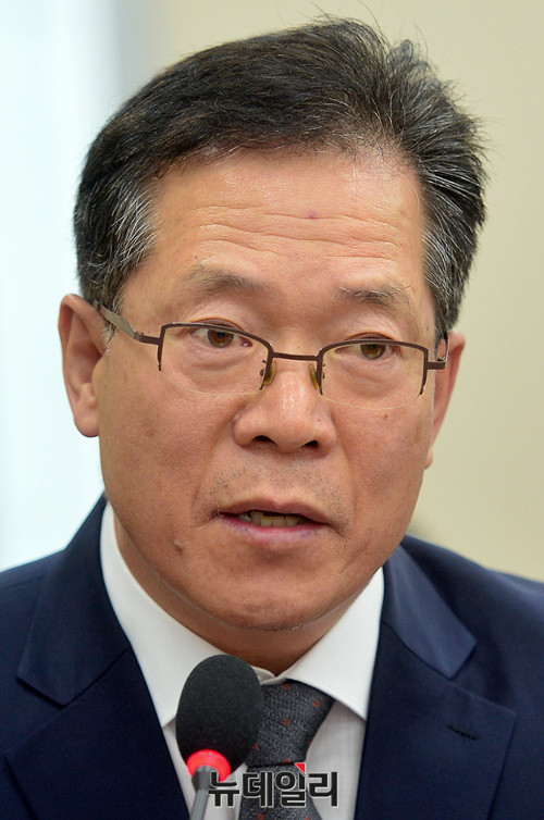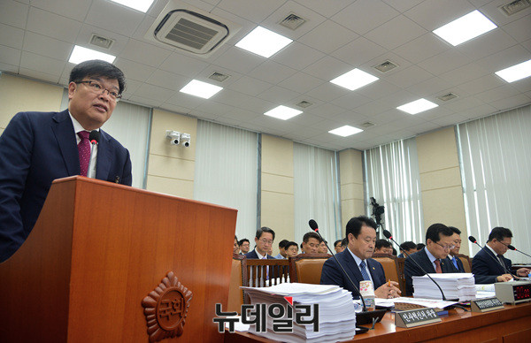 우재봉 소방청 차장이 18일 오후 국회에서 열린 행정안전위원회 전체회의에서 발언하고 있다. 이날 회의에는 이철성 경찰청장, 김판석 인사혁신처 차장, 우재봉 소방청 차장, 김대년 중앙선거관리위원회 사무총장, 심보균 행정안전부 차관 등이 참석했다.