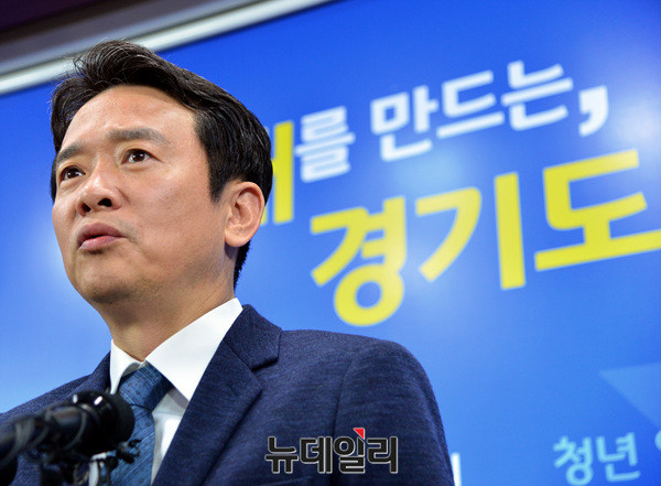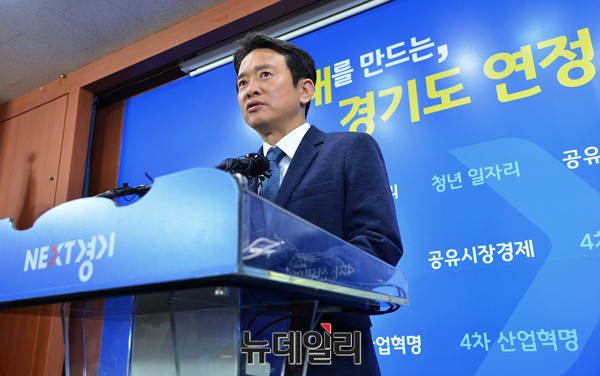 남경필 경기지사가 19일 오전 경기도청에서 장남 남 모씨의 필로폰 투약 혐의와 관련한 기자회견을 하고 있다. 남 지사는 "국민 모든 분께 고개 숙여 사과 한다"며 "아버지로서 참담한 마음이며 아들이 보고싶다"고 말했다.