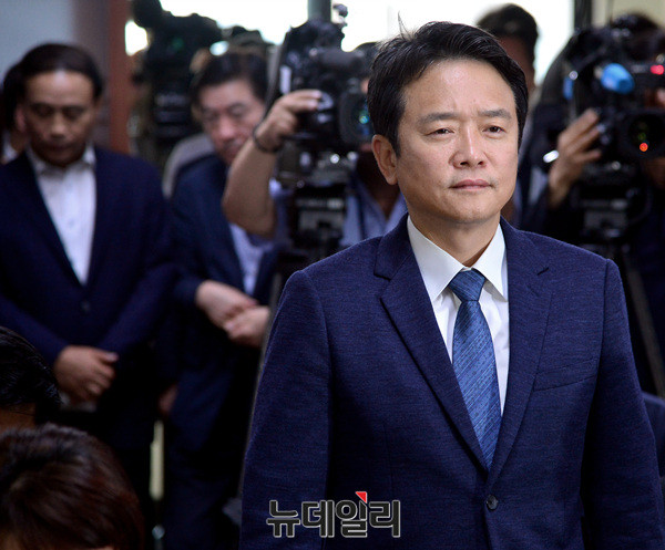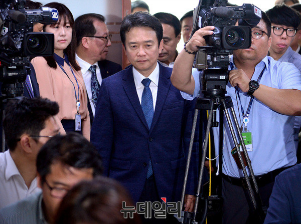 남경필 경기지사가 19일 오전 경기도청에서 장남 남 모씨의 필로폰 투약 혐의와 관련한 기자회견장에 들어서고 있다. 남 지사는 "국민 모든 분께 고개 숙여 사과 한다"며 "아버지로서 참담한 마음이며 아들이 보고싶다"고 말했다.