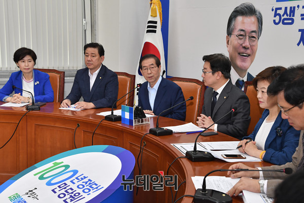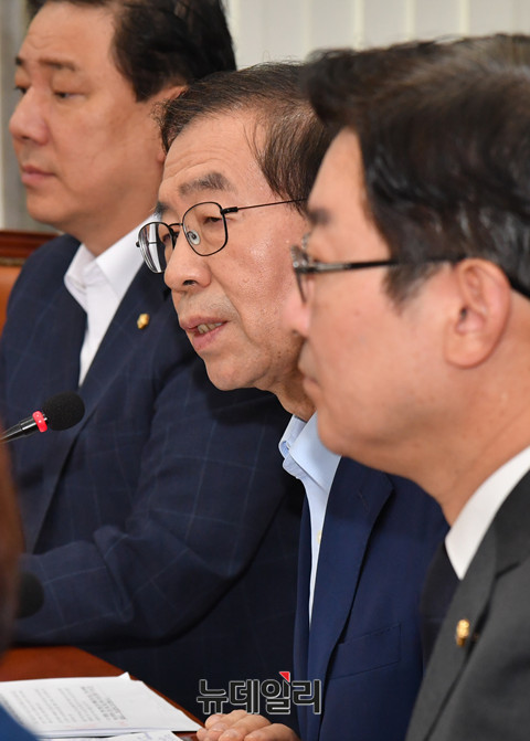 박원순 서울시장이 19일 오전 국회에서 열린 더불어민주당 적폐청산위원회 6차 전체회의에서 이명박 전 대통령을 국정원법 위반과 명예훼손 등의 혐의로 검찰에 고발하겠다고 발언하고 있다.