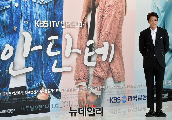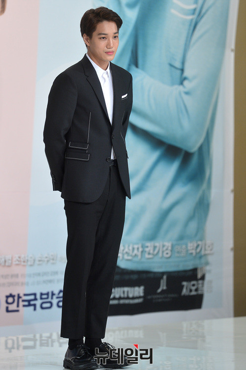 엑소(EXO) 카이가 19일 오후 서울 영등포 타임스퀘어에서 드라마 '안단테' 제작발표회에 참석해 포토타임을 갖고있다.카이는 도시에서 시골학교로 전학가게 된 천방지축 고교생 시경 역을 맡았다.