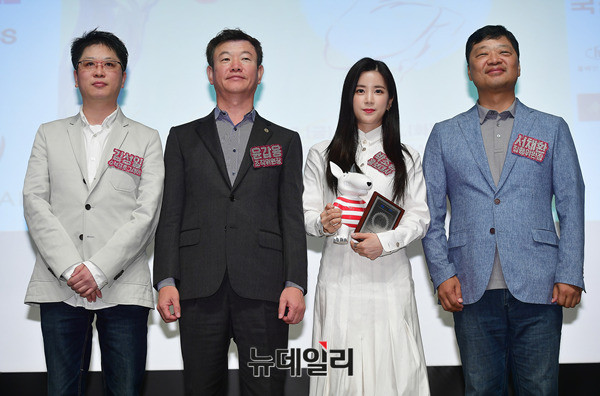 걸그룹 에이핑크 박초롱이 20일 오전 한국프레스센터 국제회의장에서 열린 부천국제애니메이션페스티벌(BIAF2017) 기자회견에서 홍보대사 위촉식 직후 기념촬영을 하고 있다. 부천국제애니메이션페스티벌은 '애니+펀(Ani_Fun)'을 주제로 오는 10월 20일부터 24일까지 한국만화박물관 상영관을 비롯한 부천일대에서 개최된다. 올해 상영작은 37개국 149편이다.