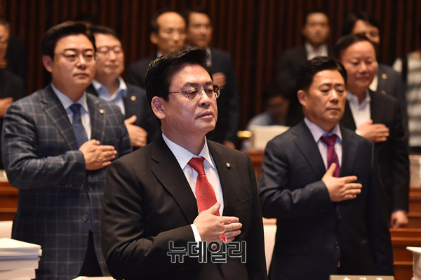 [포토] 국민의례하는 자유한국당 홍준표 대표