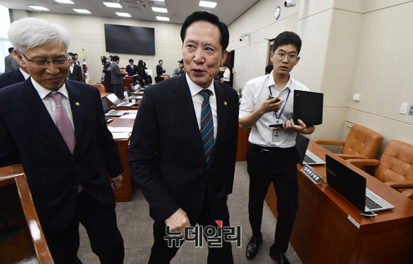 송영무 국방부 장관이 20일 오후 국회에서 열린 국방위원회 전체회의를 마치고 회의장을 나서고 있다.