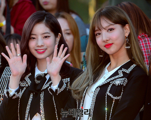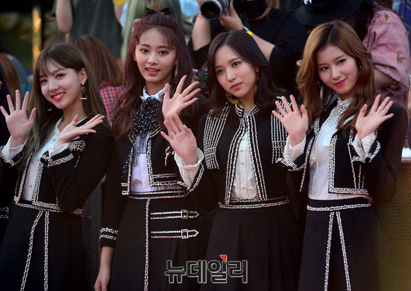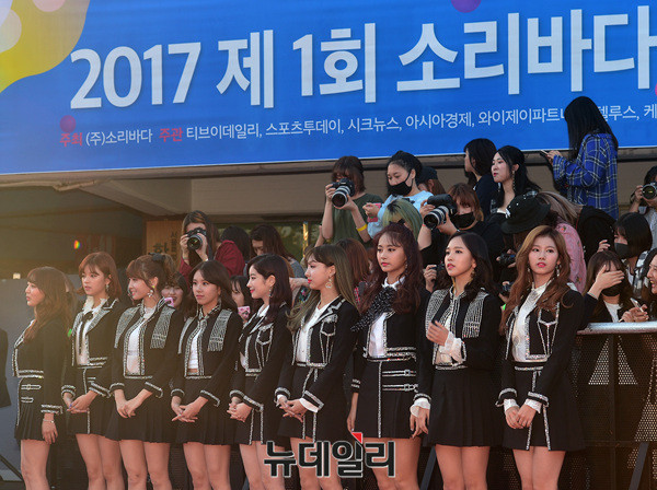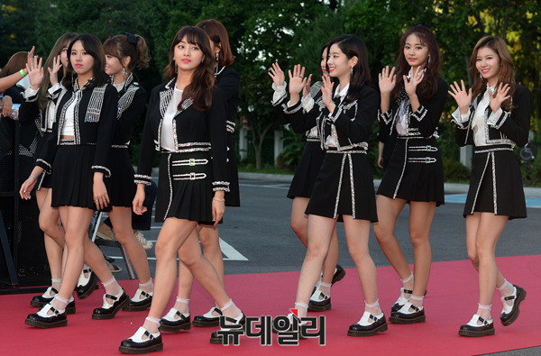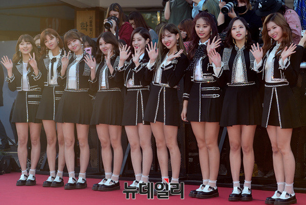 그룹 트와이스가(TWICE : 나연, 정연, 모모, 사나, 지효, 미나, 다현, 채영, 쯔위)가 20일 오후 서울 송파구 잠실학생체육관에서 열린 '2017 제1회 소리바다 베스트 케이뮤직 어워즈(2017 1st SORIBADA BEST K-MUSIC AWARDS)'에 참석해 포즈를 취하고 있다. 이날 행사에는 그룹 워너원, 엑소, 트와이스, 레드벨벳 등이 참석했다.