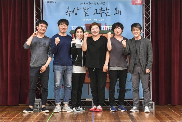 "장우재 작가는 표피적으로는 거대 담론을 보여주지 않는다. 일상 속에서 묻어나는 담론을 이야기한다. 특별한 수정 작업 없이 초고 그대로 무대에 올린다. 그와 오랜만에 만나 재미있게 작업하고 있다."김광보 연출은 21일 오후 세종문회회관 예술동 3층 연습실에서 열린 '옥상 밭 고추는 왜' 제작발표회에서 장우재 작가와 2006년 '악당의 조건' 이후 11년 만에 재회한 소감을 밝혔다.서울시극단(예술감독 김광보)은 10월 13부터 29일까지 세종문화회관 M씨어터에서 'Ethics(윤리들) VS. Morals(도덕들)'라는 가제를 달고 창작극 '옥상 밭 고추는 왜'를 공연한다.김 연출과 장 작가는 1994년 '지상으로부터 20미터'로 나란히 데뷔했으며, 이후 '열애기'(1997), '악당의 조건'(2006)에서 호흡을 맞췄다. 두 사람은 낡은 단독빌라 옥상 텃밭 고추 때문에 벌어진 일련의 사건을 중심으로, 도덕과 윤리 사이에서 고민하는 우리 사회의 모습을 투영한다.장우재 작가는 가제에 대해 "이제는 도덕과 윤리를 구별하는 시대에 접어들었다. 도덕은 사회 전체가 유지되기 위해 '사람은 이래야 한다' 모두가 지켜야하는 커다란 옳은 것이다. 윤리는 개인이 '뭘 지키며 살아야 할까' 스스로의 기준을 찾는 삶에 대한 태도"라고 설명했다.장 작가는 작품을 집필하면서 독일녹색당을 창당한 페트라 켈리가 68혁명 당시 연설에서 '가장 개인적인 것이 가장 정치적'이라고 했던 말이 힘이 됐다고 한다. 이는 개인의 문제가 바로 내 주변 사람들의 문제이고 동시에 우리 사회 문제이기도 하다."예전에 살던 연립빌라 옥상에서 실제 있었던 경험을 토대로 극을 썼다. 당시 아주머니가 고추를 절반 이상을 따서 다툼이 있었는데, 그 외에는 다 픽션이다. 현재 우리가 고민해봐야 하는 것은 거대 담론이 아니라, 바깥에서 일어나고 있는 사회적인 문제들이 일상 안에서 어떻게 다뤄지고 있는가다."