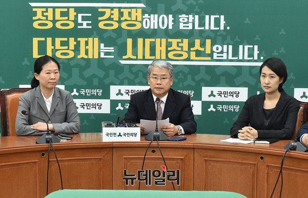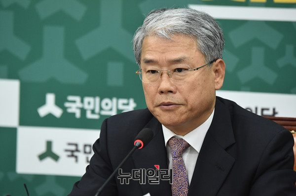 국민의당 김동철 원내대표가 21일 오전 국회에서 원내대표실에서 기자회견을 열고 국민의당의 김명수 대법원장 후보자 임명동의안 관련 발언을 하고 있다.