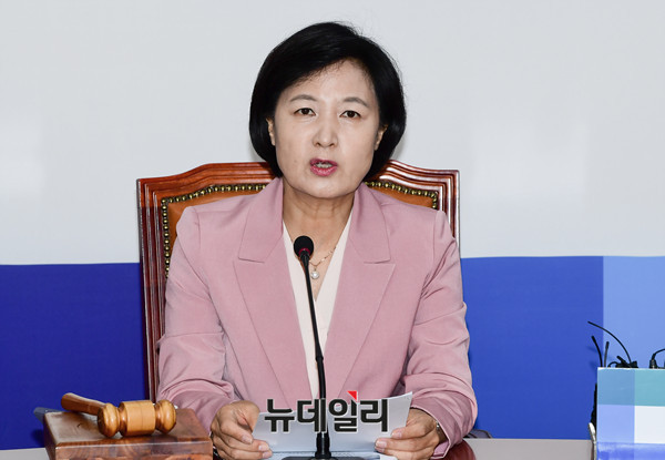 추미애 더불어민주당 대표가 25일 오전 국회 당대표실에서 열린 최고위원회의에 참석해 모두발언을 하고 있다.