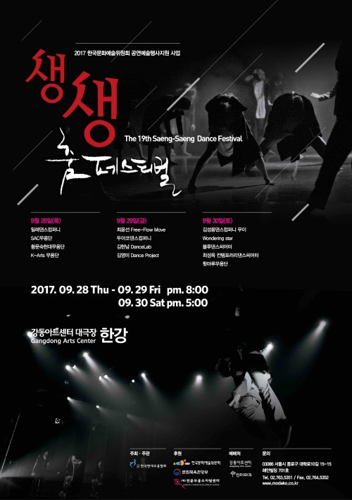 젊은 국내 현대무용안무가들의 생생한 춤의 향연이 펼쳐진다.한국현대무용협회(회장 김혜정)가 주최하는 '제19회 생생 춤 페스티벌'이 오는 28~30일 3일간 강동아트센터 대극장 한강에서 열린다.기존에는 현대무용을 전공한 대학생이 주로 참가해 작품을 선보였다. 올해부터는 국내에서 활발히 활동중인 30대 이상의 젊은 안무가들 중 최근 5년 이내 3편 이상 작품을 안무한 사람이 참여할 수 있다.김혜정 한국현대무용협회장은 "이번에 회장으로 취임하면서 협회가 운영하고 있는 축제나 대회 사업이 좀 더 체계적으로 운영될 수 있도록 변화를 줬다. 참여가능한 안무가들의 연령이나 역량에 따라 '신인안무가데뷔전, 모다페 스파크플레이스(국내초청작), 생생 춤 페스티벌'로 각각의 정체성을 재정립했다"고 밝혔다.'2017 생생 춤 페스티벌' 라인업은 30대 후반부터 40대 초반까지 국내 무용계를 이끌어가는 실력파 젊은 안무가들이 다수 포진하며 그 어느 때보다 화려하다.