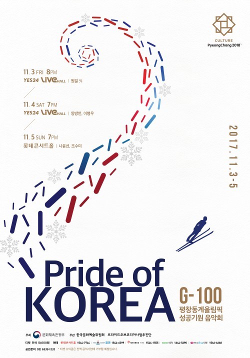 문화체육관광부가 주최하고 한국문화예술위원회 주관하는 'Pride of KOREA(프라이드 오브 코리아)'가 11월 3일부터 5일까지 Yes24라이브홀과 롯데콘서트홀에서 열린다.